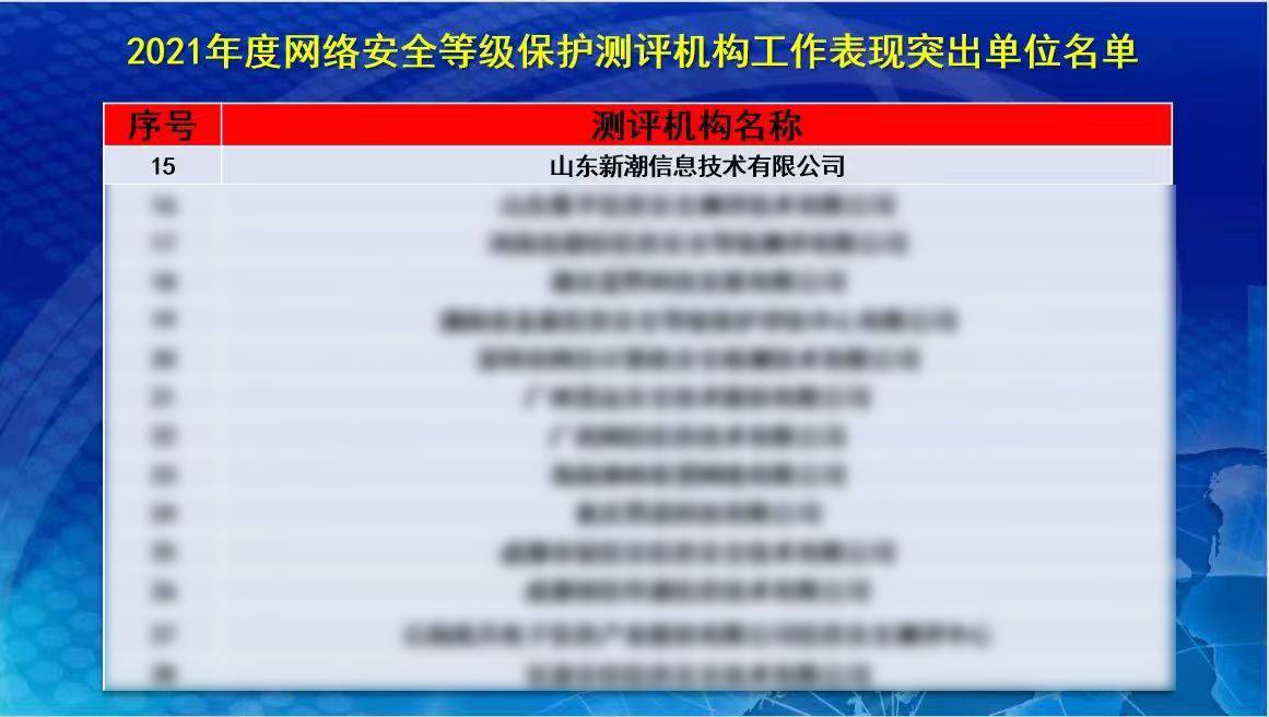 再獲殊譽(yù)!新潮信息榮獲全國(guó)等保測(cè)評(píng)工作表現(xiàn)突出單位