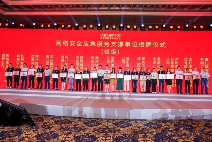 2019年7月17日下午,國家互聯(lián)網(wǎng)應(yīng)急中心(CNCERT)在2019年中國網(wǎng)絡(luò)安全年會上舉行了第八屆網(wǎng)絡(luò)安全應(yīng)急服務(wù)支撐單位授牌儀式,為103個支撐單位授牌。