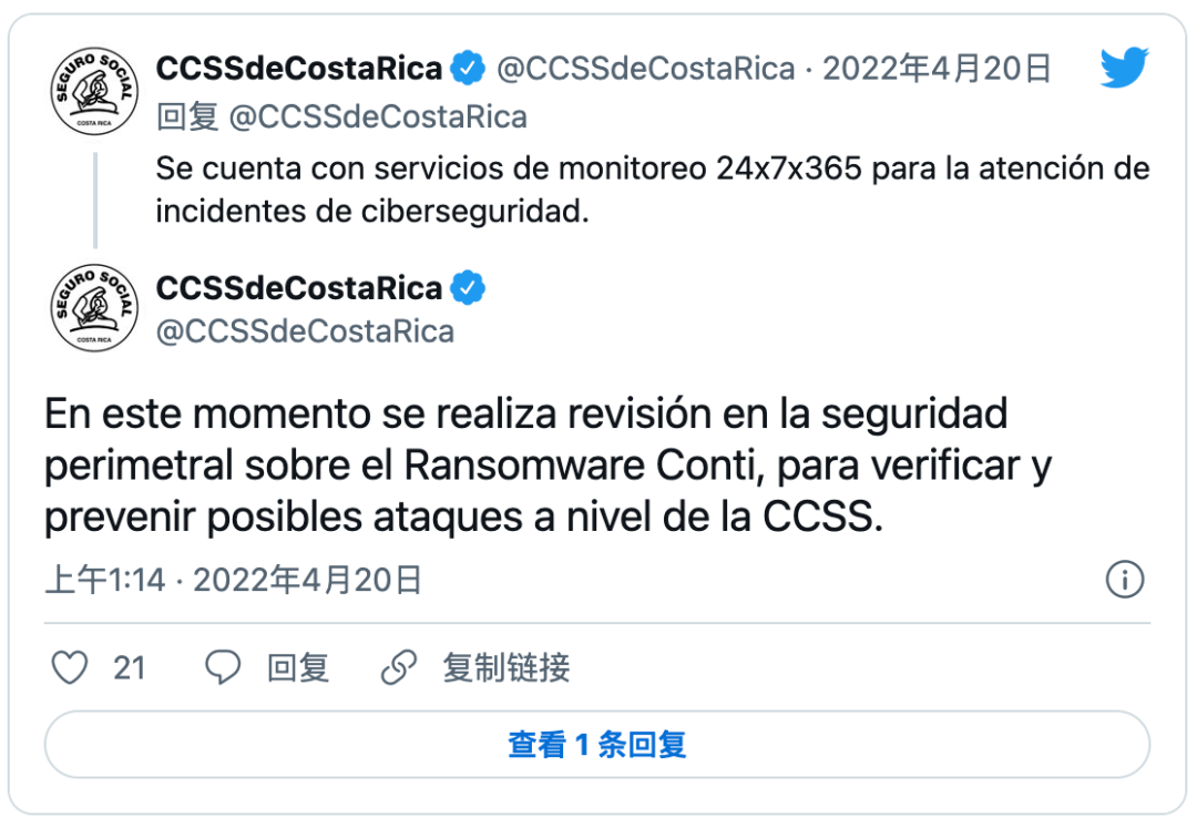 當(dāng)?shù)貢r(shí)間4月18日,哥斯達(dá)黎加財(cái)政部的網(wǎng)絡(luò)系統(tǒng)就遭到黑客攻擊,政府隨即采取預(yù)防性措施,關(guān)閉了部分系統(tǒng)。該國(guó)養(yǎng)老金、公共系統(tǒng)薪酬支付以及稅收、進(jìn)出口系統(tǒng)均受到不同程度影響。