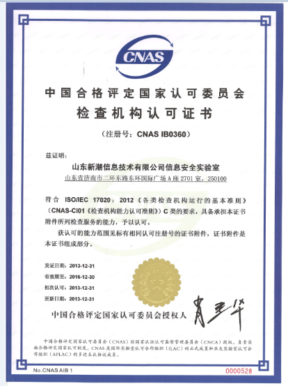 熱烈祝賀我公司獲得由中國合格評定國家認可委員會頒發(fā)的檢驗機構認可證書,此證書成為我公司的又一里程碑。